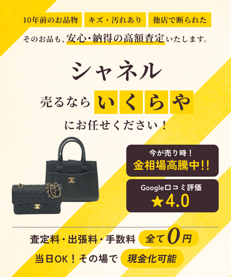 シャネルはフランス発の世界的ラグジュアリーブランドで、1910年創業以来、ファッション、バッグ、アクセサリー、香水など多彩なアイテムで人気を誇ります。特に「シャネルNo.5」や「クラシックフラップバッグ」はブランドの象徴で、中古市場でも高い需要があります。上質な素材と洗練されたデザインが特徴で、年代を問わず愛され続けています。シャネル製品は買取市場でも価値が安定しており、状態や希少モデルによっては高額査定が期待できます。買取について、「いくらや」へお気軽にご相談ください。