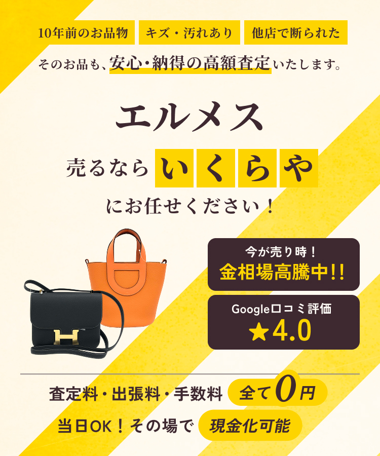 エルメスは1837年にフランスで創業されたラグジュアリーブランドで、高品質な革製品やシルクスカーフ、時計、ジュエリーなどで世界的に知られています。特にバーキンやケリーなどのバッグは希少価値が高く、中古市場でも高額取引される人気アイテムです。エルメス製品は卓越した職人技と厳選された素材を用い、時代を超えて愛されるデザインが特徴です。買取市場でも需要が高く、状態やモデルによっては高価査定が期待できます。買取について、「いくらや」へお気軽にご相談ください。