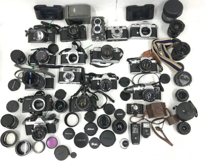 一眼レフ、ミラーレス、フィルムカメラ、コンパクトデジタルカメラ、レンジファインダー、中判・大判カメラなど幅広くお取り扱いしています。レンズやアクセサリーのみでも査定可能です。