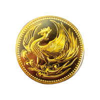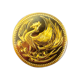 「天皇陛下御即位記念10万円金貨」は、1990年に当時の上皇陛下が天皇に即位されたことを記念して、日本造幣局から発行された金貨です。表面には鳳凰、裏面には菊花紋章が精緻に刻まれ、偽造防止用の認証番号も付されています。先に登場した「天皇陛下御在位六十年記念金貨」より約10g重く、2024年6月時点の金相場を踏まえると、その価格は御在位六十年記念金貨より10万円以上高くなっています。