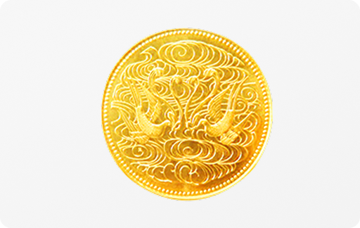 皇太子殿下のご成婚を記念して造られた18gの純金記念貨です。格調高く華やかな意匠が施されており、記念品としての意義に加え、コレクターズアイテムとしても高い評価を得ています。