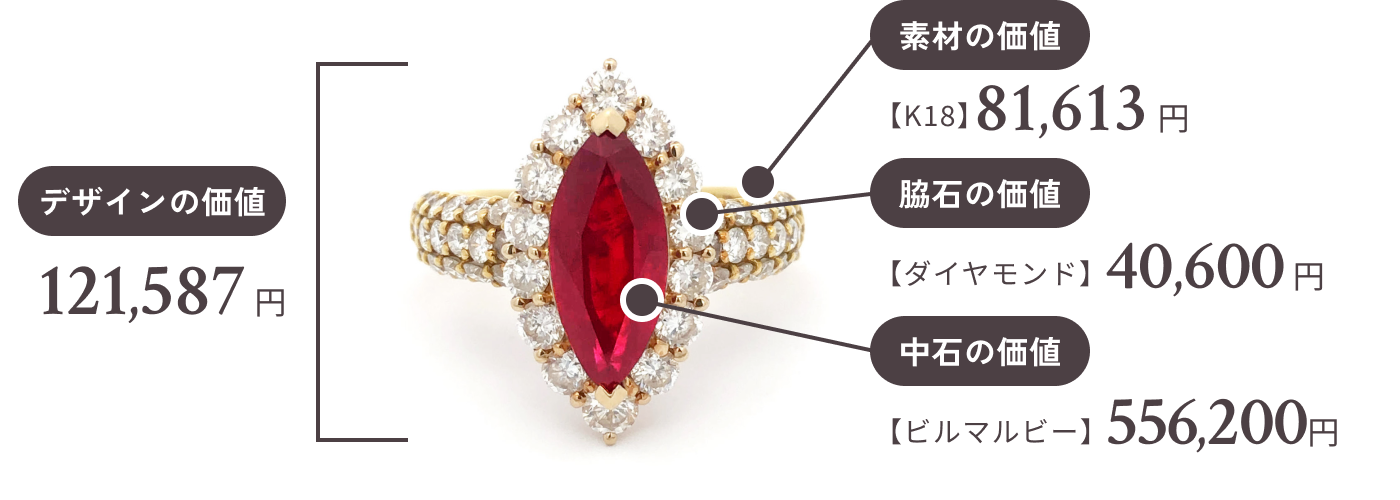 宝石(色石)の査定額は、大きさ・カラー・カット方法・キズの有無