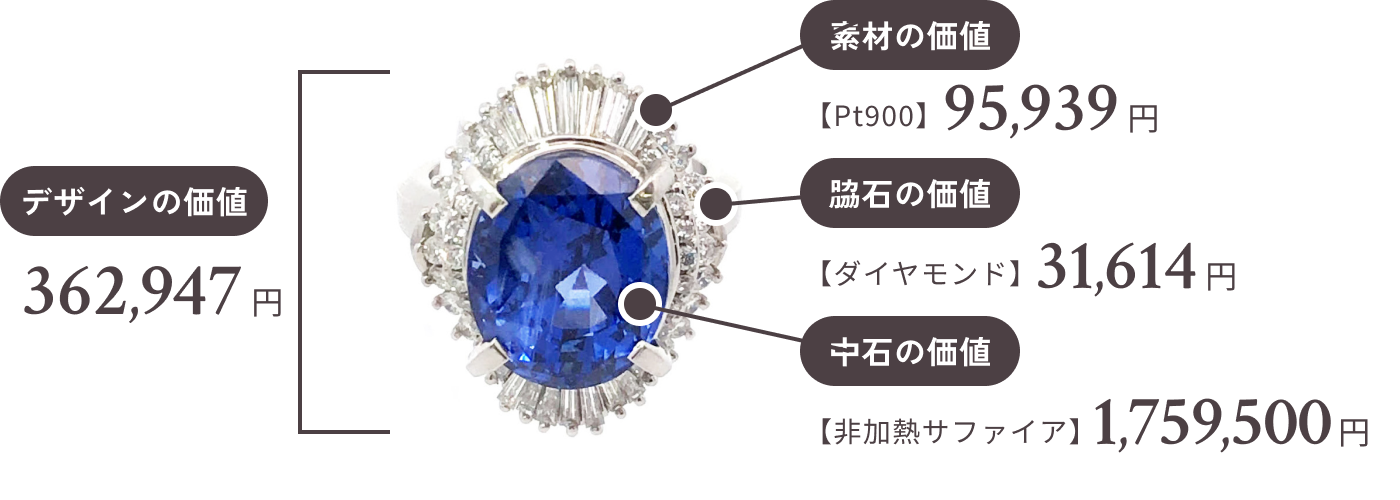 宝石(色石)の査定額は、大きさ・カラー・カット方法・キズの有無