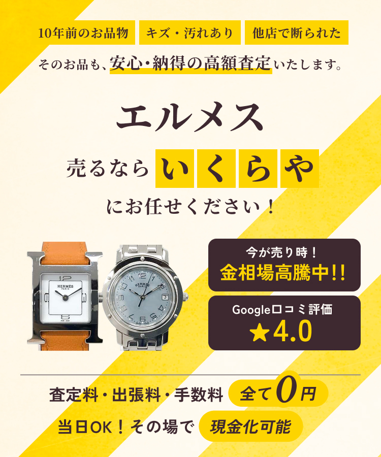 高額査定を狙うなら、日頃からエルメス / 時計をきれいな状態に保つことが大切です。定期的なメンテナンスで機能面を維持し、故障や部品の欠損がないようにしましょう。目立つ汚れがある場合は、柔らかい布で軽く清掃してから査定に出すと印象が良くなります。