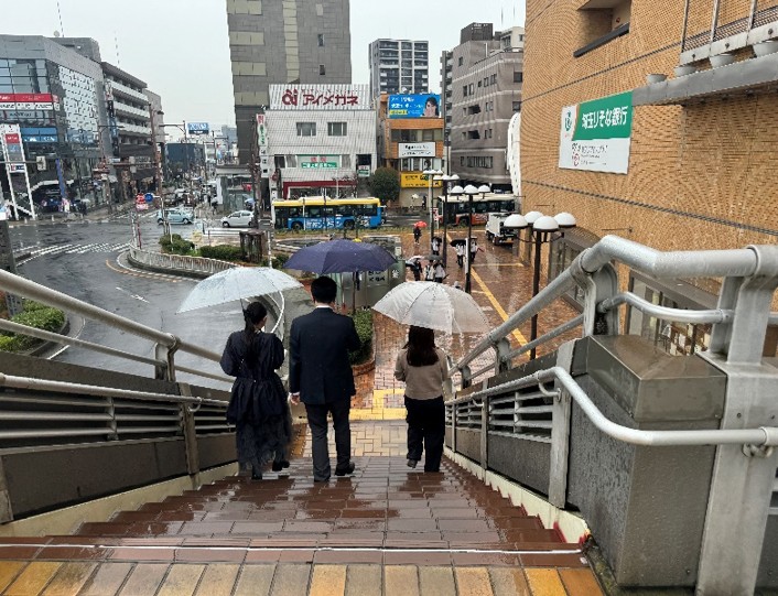 交差点方面へ階段を下りてください。