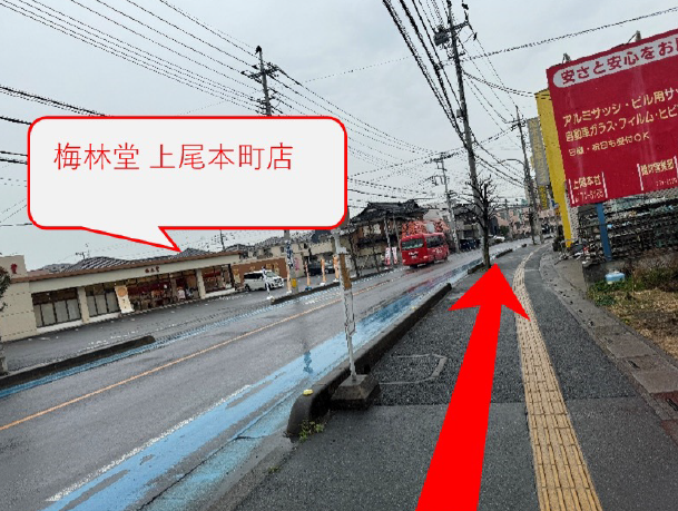左手に梅林堂 上尾本町店様が見えましたらその向かい側に当店がございます。