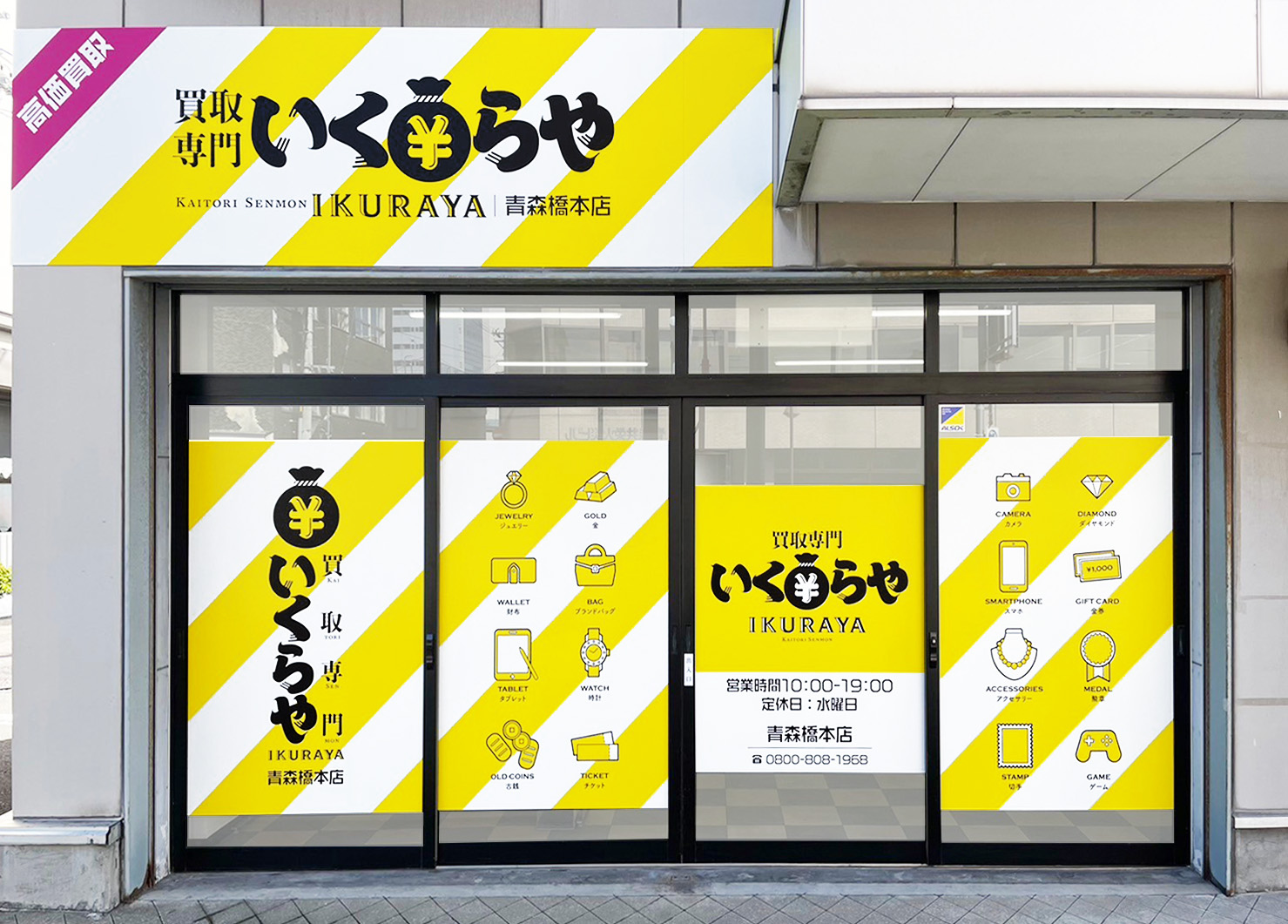 国道103号線(観光通り)沿い、NTTコム 青森橋本ビル隣に、黄色と白の看板が目印の買取専門いくらや 青森橋本店がオープンしました!
