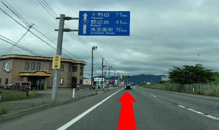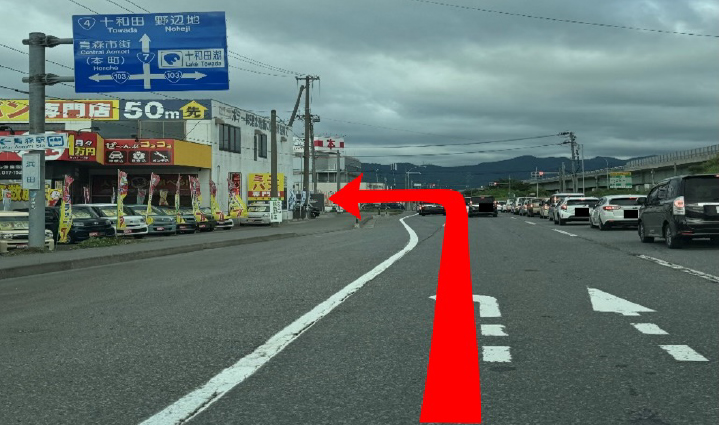 浜田交差点を左折し、国道103号線(観光通り)を青森市街(本町)方面へ進んでください。