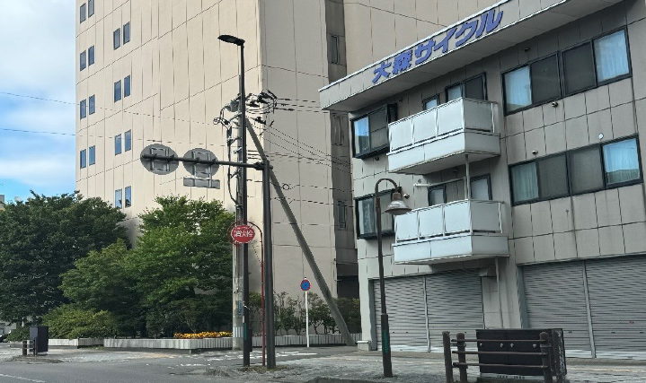 右側に見えるNTTコム青森橋本ビルのすぐ手前に当店がございます。