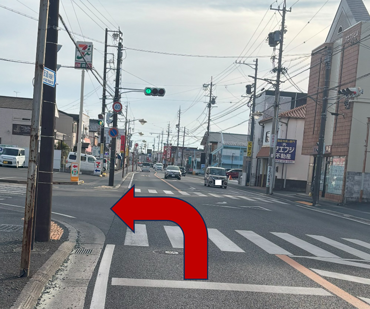 浜松西インタ交差点を東方向に直進します。