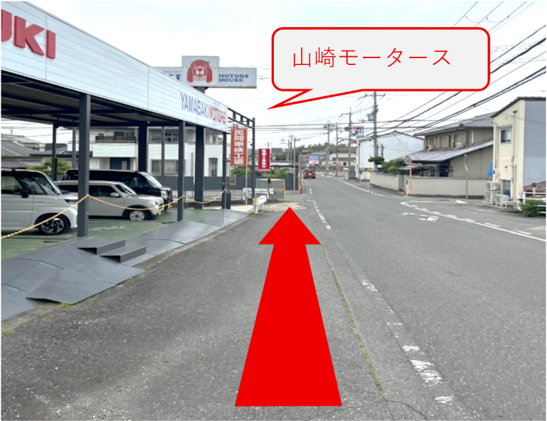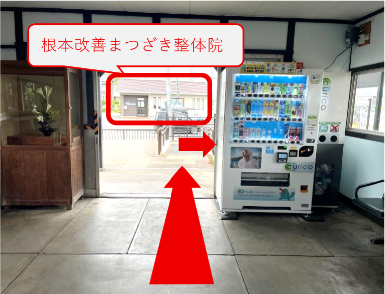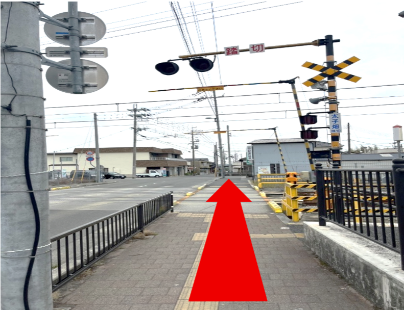 根本改善まつざき整体院を左手に、踏切を渡り、約350m直進します