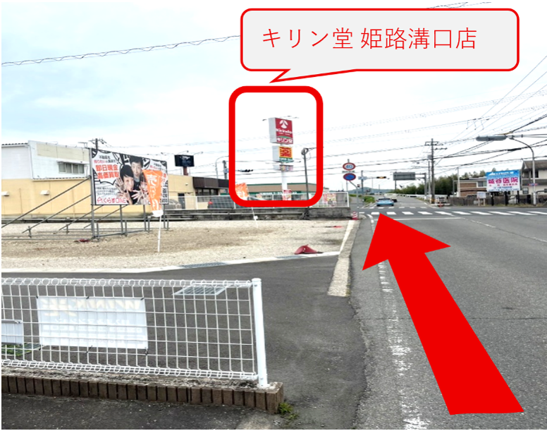 キリン堂 姫路溝口店の看板が見えたらもうすぐです。