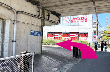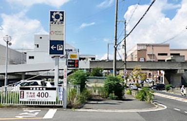 山科川を渡り50mほど進むとイズミヤショッピングセンターの駐車場が見えます。