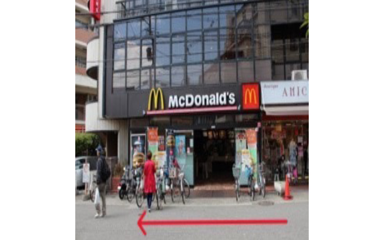 駅からまっすぐ向かい店舗の途中のマクドナルド様を通過します。