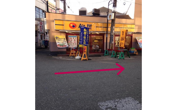 駅から店舗の途中の松屋様も通過します。