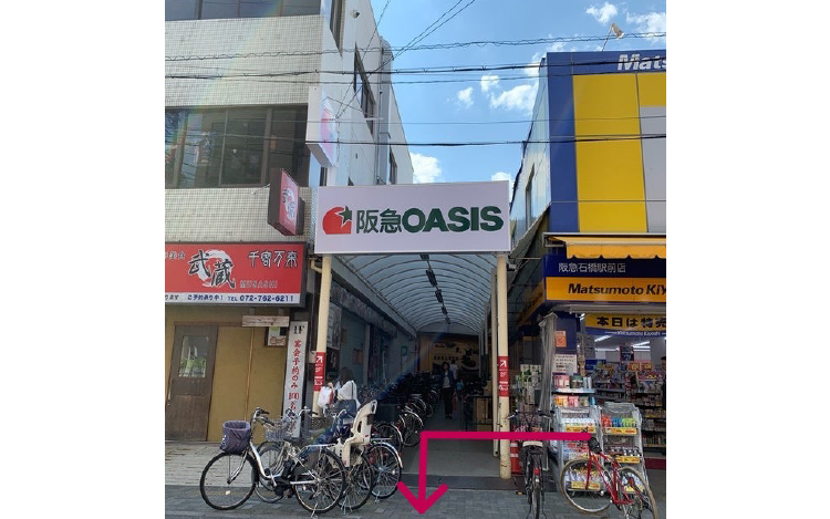 《石橋阪大前駅より徒歩3分》石橋商店街通り沿い、スーパーオアシスの前にある