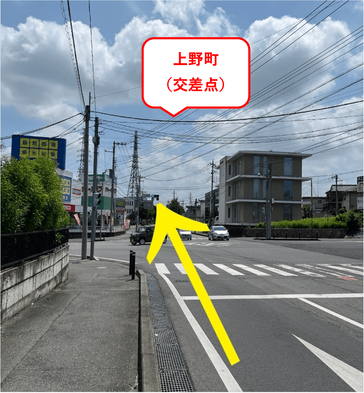 鹿沼駅西通りを550m直進。「上野町(交差点)」を通過する。