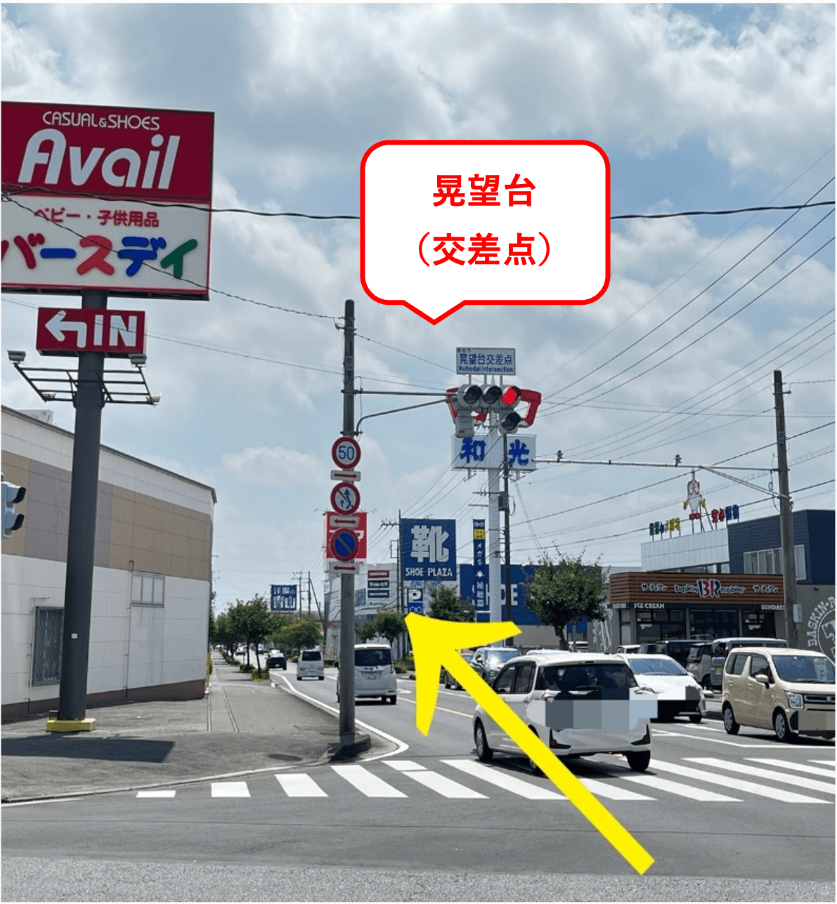さらに110m直進。「晃望台(交差点)」を通過後、500m直進。