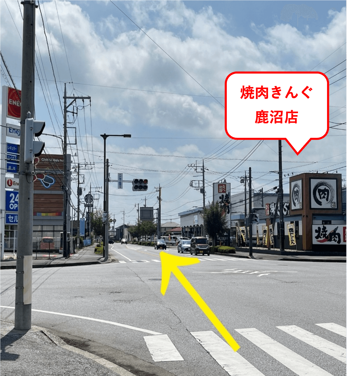 「焼肉きんぐ鹿沼店」を通過し、450m直進。