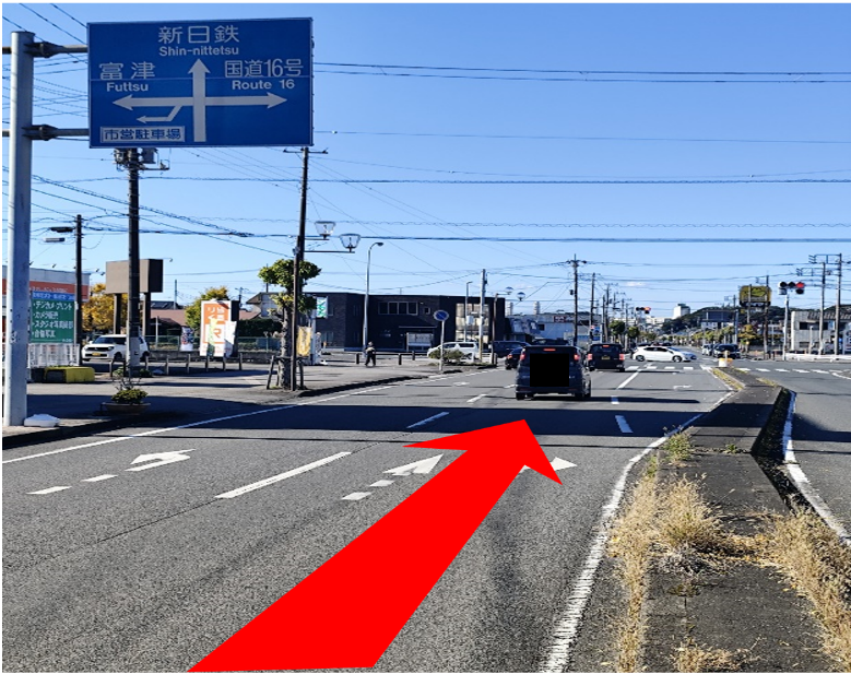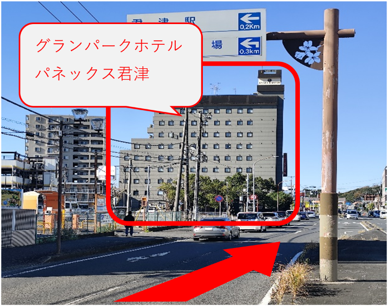 グランパークホテルパネックス君津を左手に坂田大通り(君津駅前)を直進します。