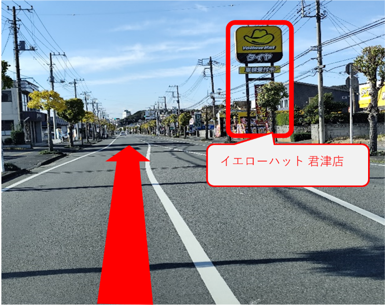 途中のイエローハット 君津店を過ぎ、新日鉄方面に直進します。