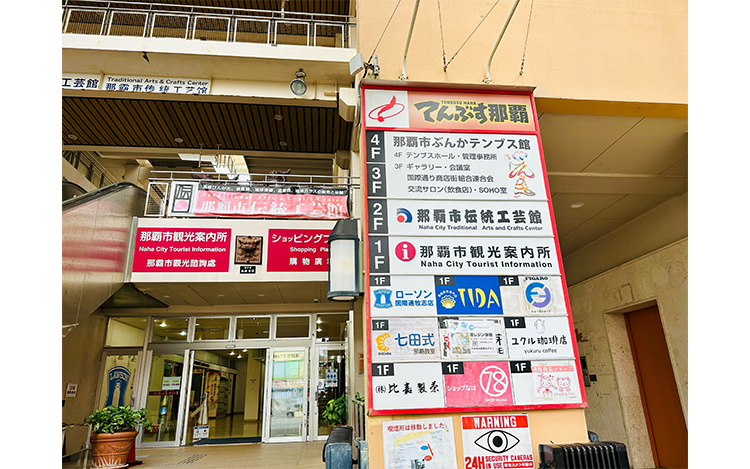 徒歩5分ほど直進すると【てんぶす那覇】に到着します