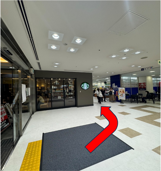 『スターバックス』がみえたら左に曲がり、まっすぐ進みます。