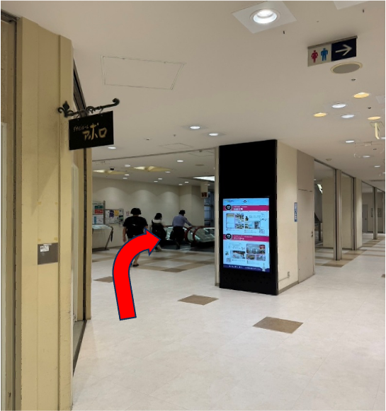 エスカレーターがみえたら、下りのエスカレーターで降りていきます。