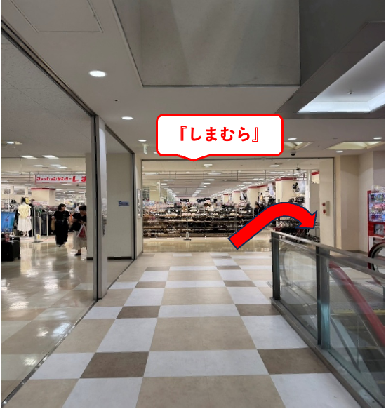 2階の『しまむら』前のエスカレーター降り1階へ行きます。