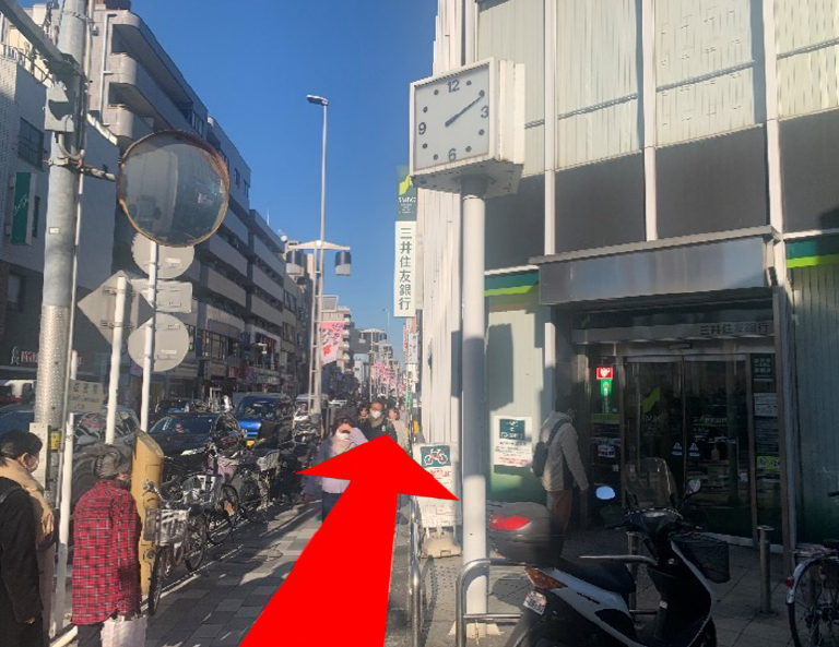 三井住友銀行 町屋支店様を右手に、直進してください。