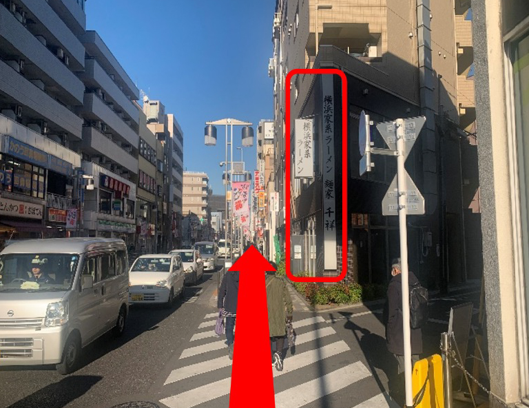 そのまま直進して頂くと、右手に「麵家 千祥」様がございますのでそのまま通過してください。