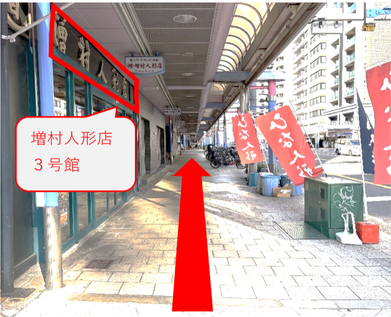 増村人形店 3号館を左手に松屋町筋商店街へ進みます。