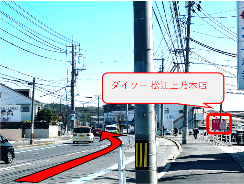 すぐ先にあるダイソー松江上乃木店を通過し70mほど進みます。