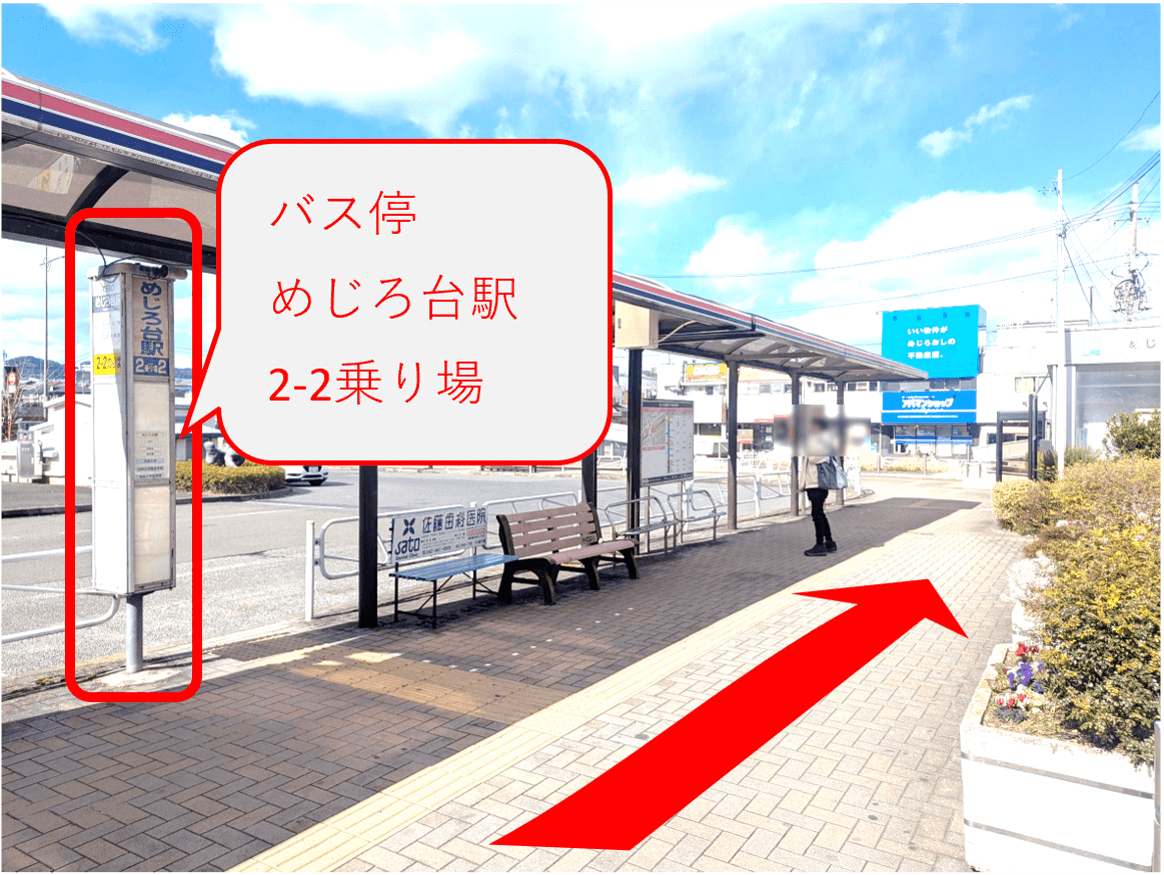 バス停 めじろ台駅 2-2乗り場から見て右方向に当店が見えます。