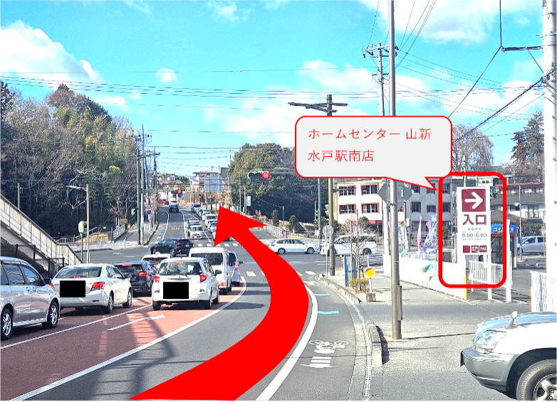 約800m直進し、本郷橋交差点(ホームセンター山新 水戸駅南店)を通過します。