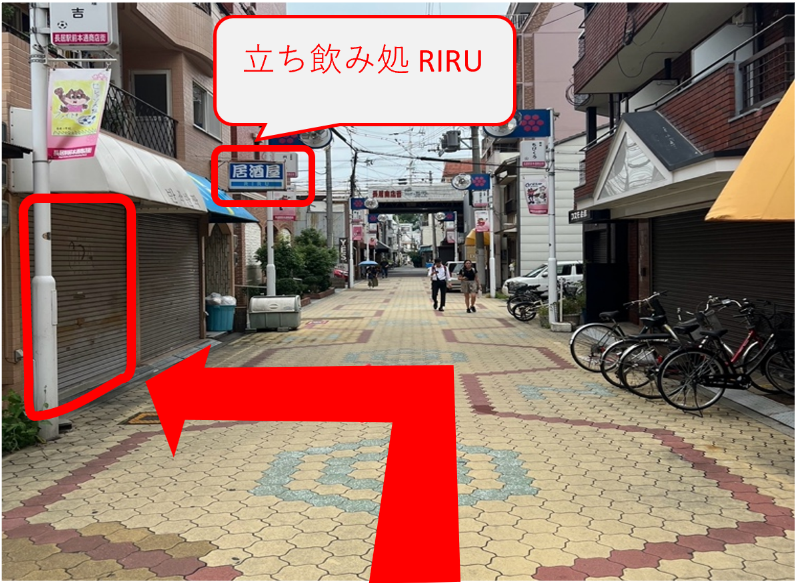 左側に立ち飲み処 RIRUがあり、その手前が当店です。