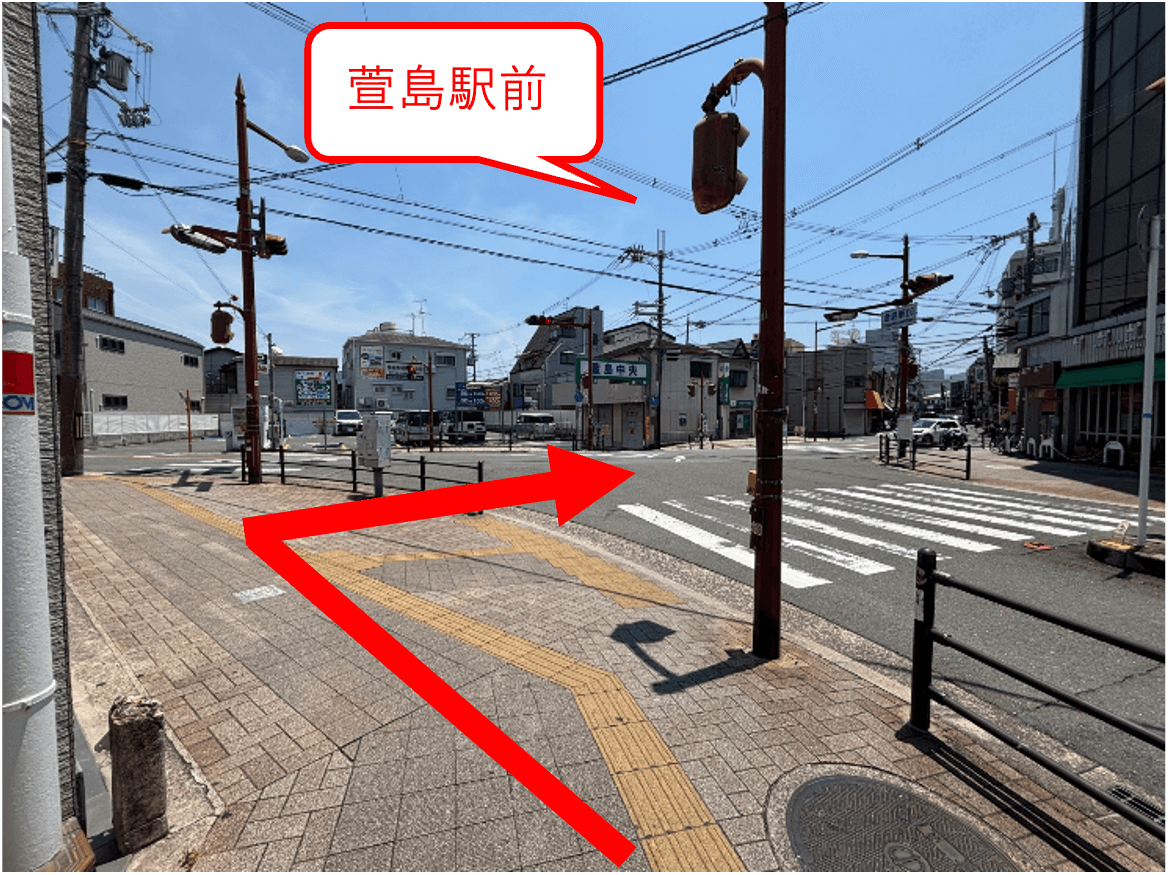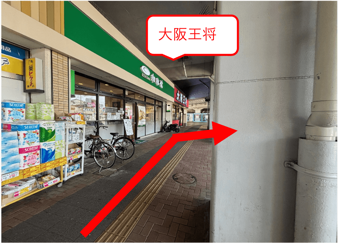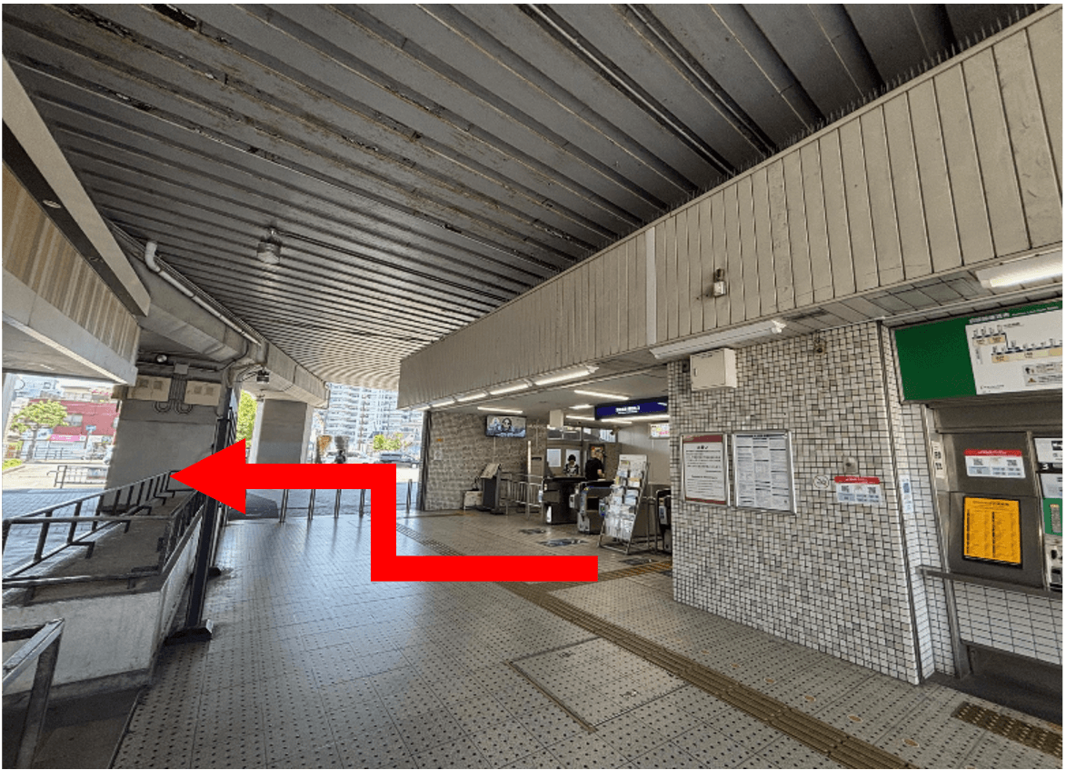 改札を出て萱島駅東口(南側)へ向かい、左へ曲がります。