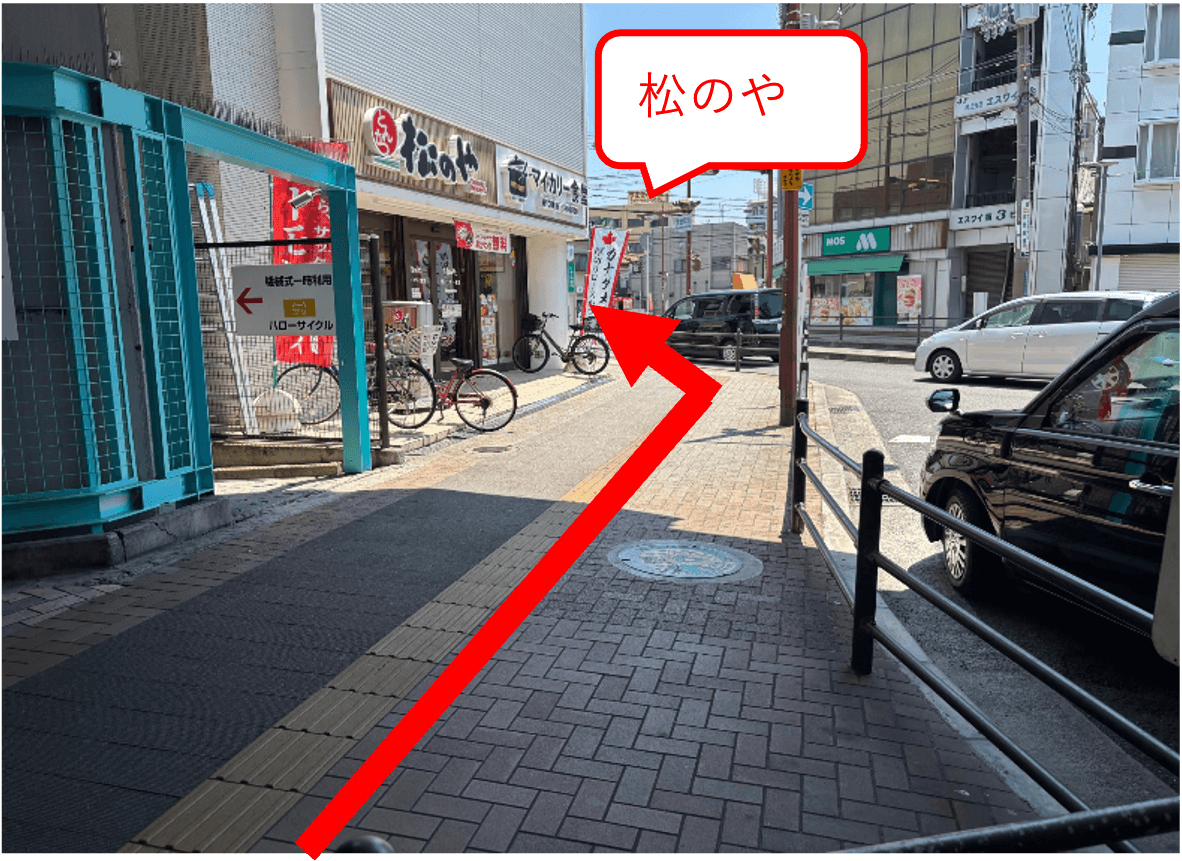 松の屋前で左へ曲がります。松のや 角で左へ曲がります。