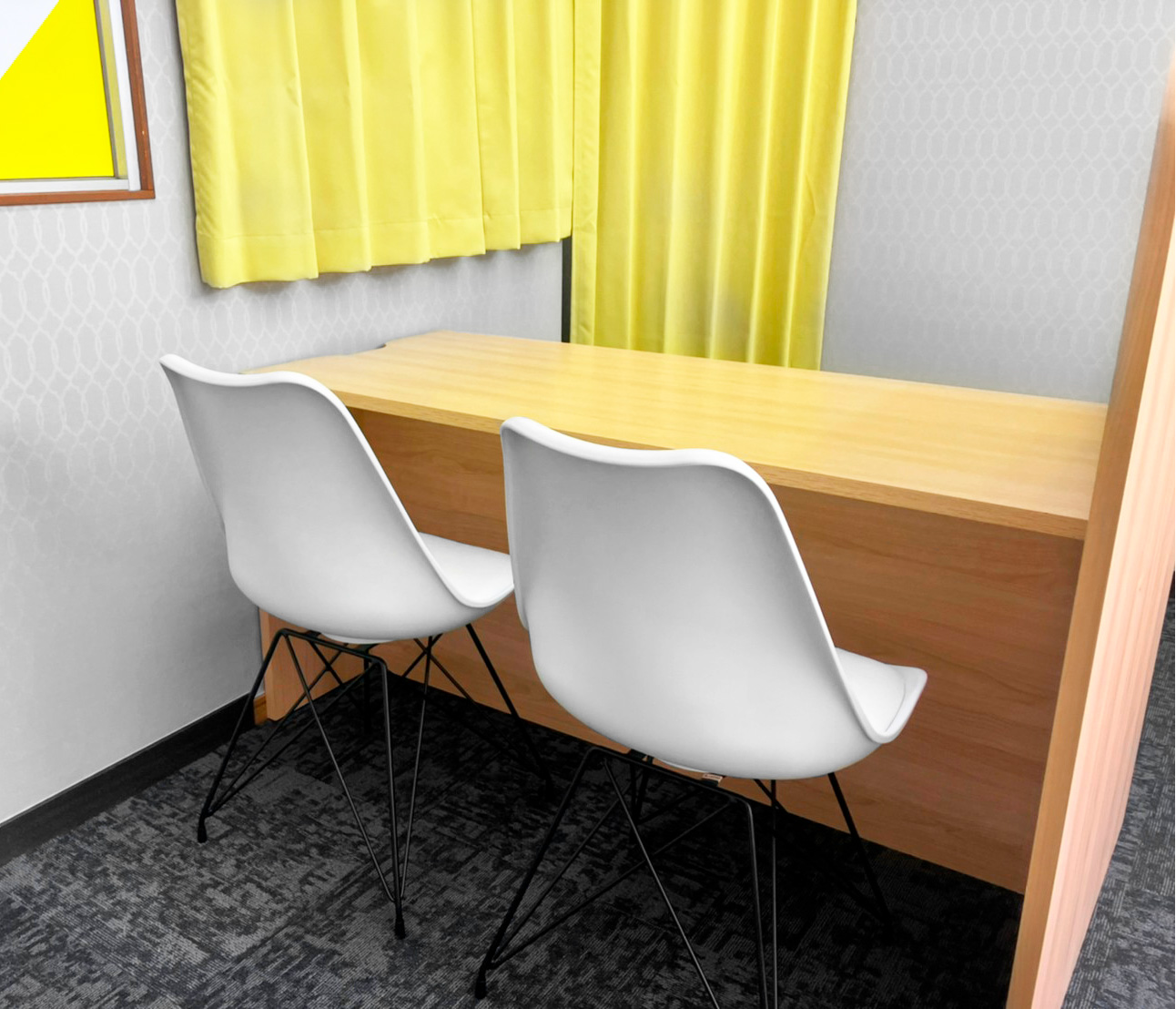 階段を降りると左正面に黄色い看板の当店がご確認頂けます。