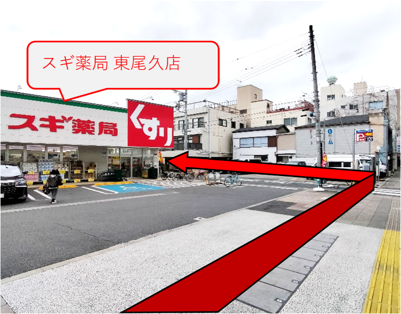 スギ薬局 東尾久店を左折後、約240m直進します。