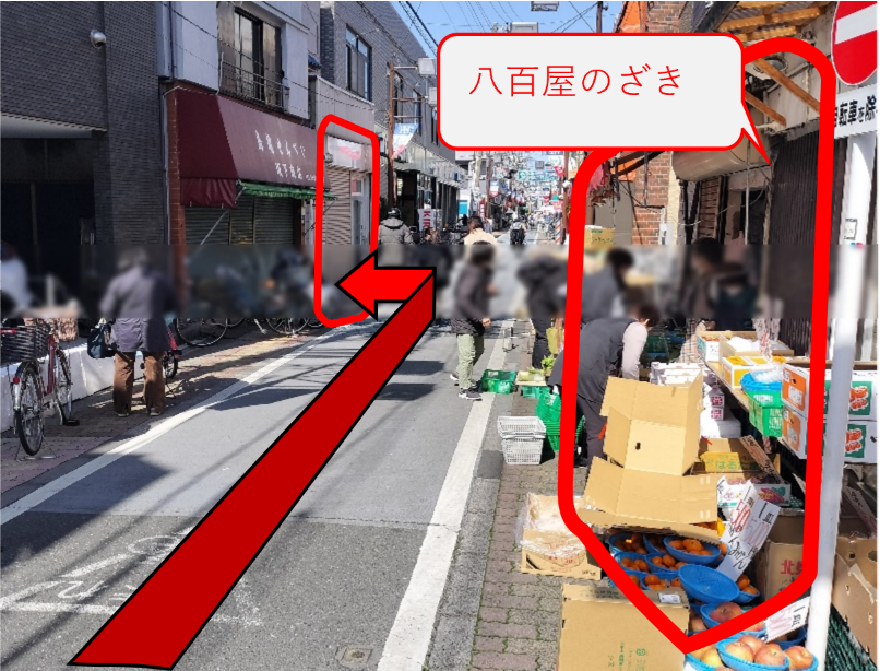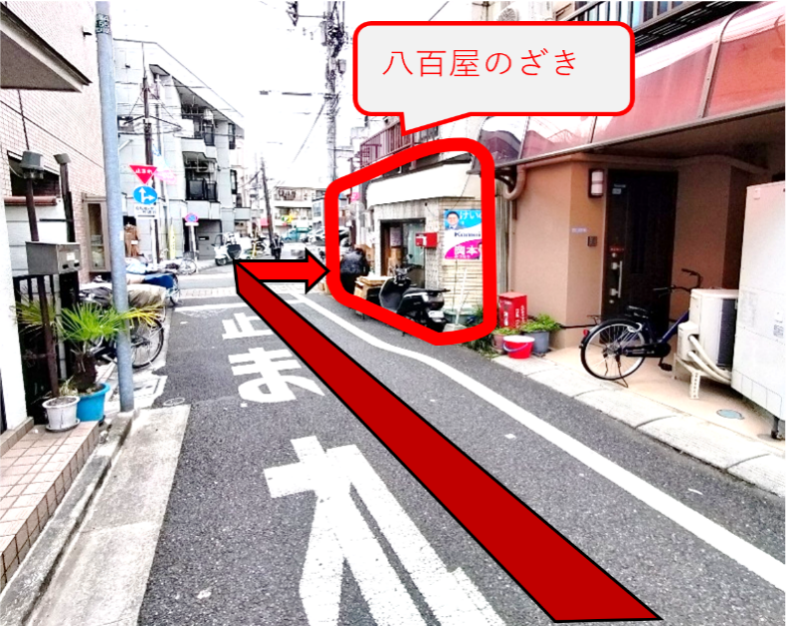 「八百屋のざき」を右折し約16m先左手が店舗です。
