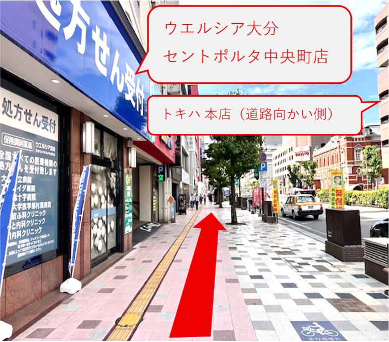 トキハ本店を通過し、約220m直進