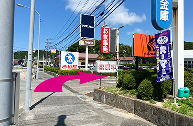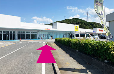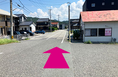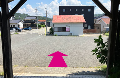 直進し駐車場入り口に入ります。