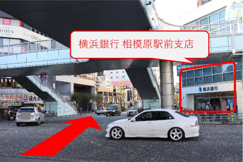 駅を背に横浜銀行 相模原駅前支店を右手にみながら直進します。