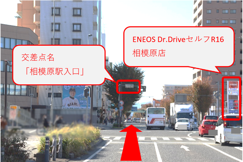 500m程進み16号線との交差点(相模原駅入り口)を直進します。