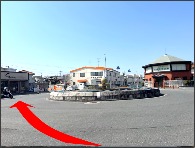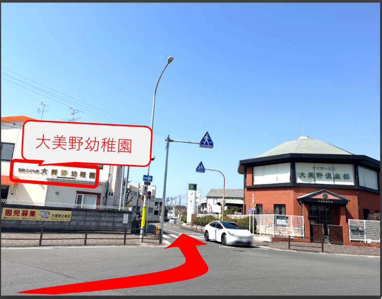 半周し、大美野幼稚園の交差点を入りその後また直進します。