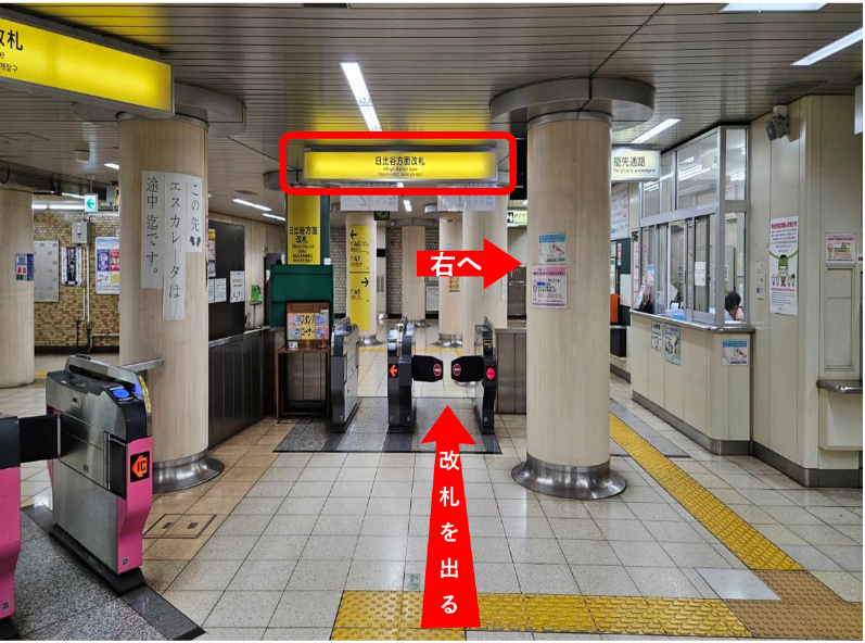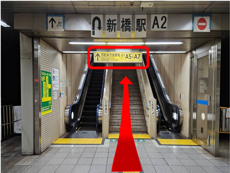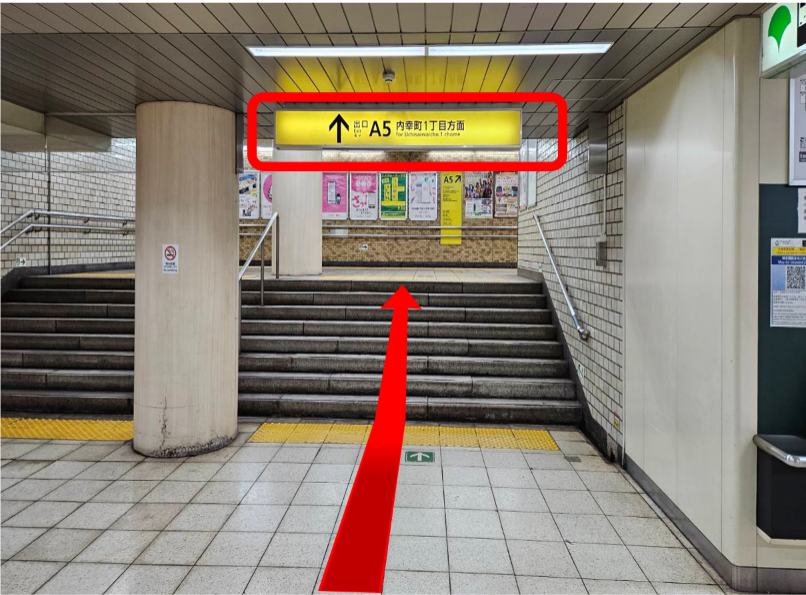都営三田線内幸町駅日比谷方面出口を目指します。