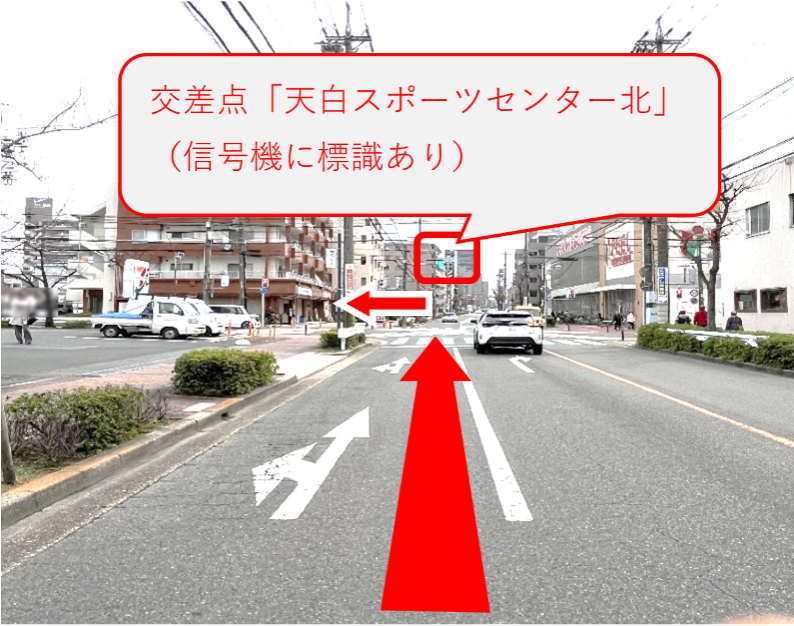 交差点「天白スポーツセンター北」を左折し 約650m直進します。