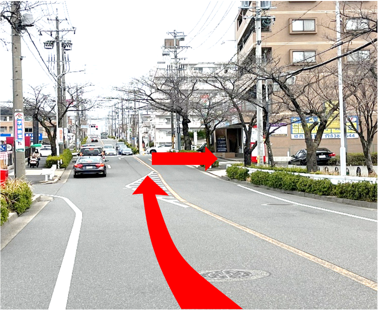 地下鉄鶴舞線 植田駅から出発し 交差点「植田駅東」方向へ 約300m直進します。