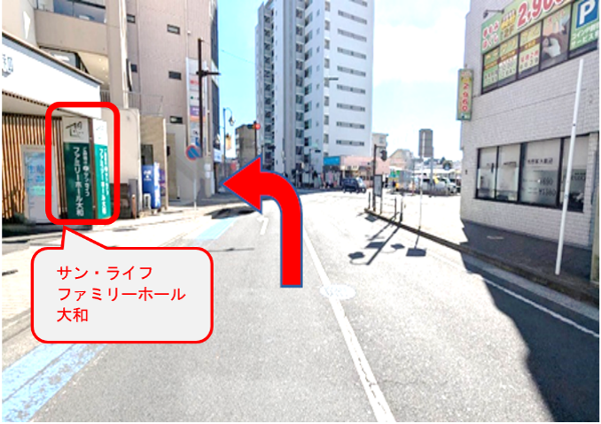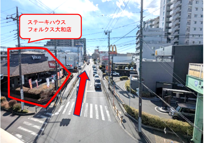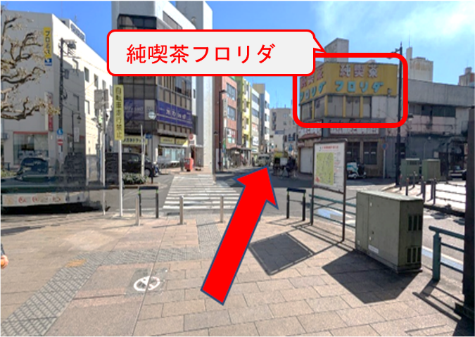 横断歩道を渡り、純喫茶フロリダを右手に道なりに約130m進む。